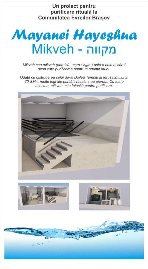19 iunie 2020 Oneg Șabat la Comunitatea Evreilor din Brașov. La intrarea în Sinagogă toată lumea a primit un plic cu titlul „Donație pentru Mikve”. Pentru ca cei care nu au venit pregătiți să nu se simtă excluși în toate plicurile exista 1 leu. Înainte de intrarea în Șabat, toți membrii Comunității Evreilor din Brașov au început construcția unei Mikve! Banii adunați atunci, ca și donațiile ulterioare au adus proiectul în faza actuală.